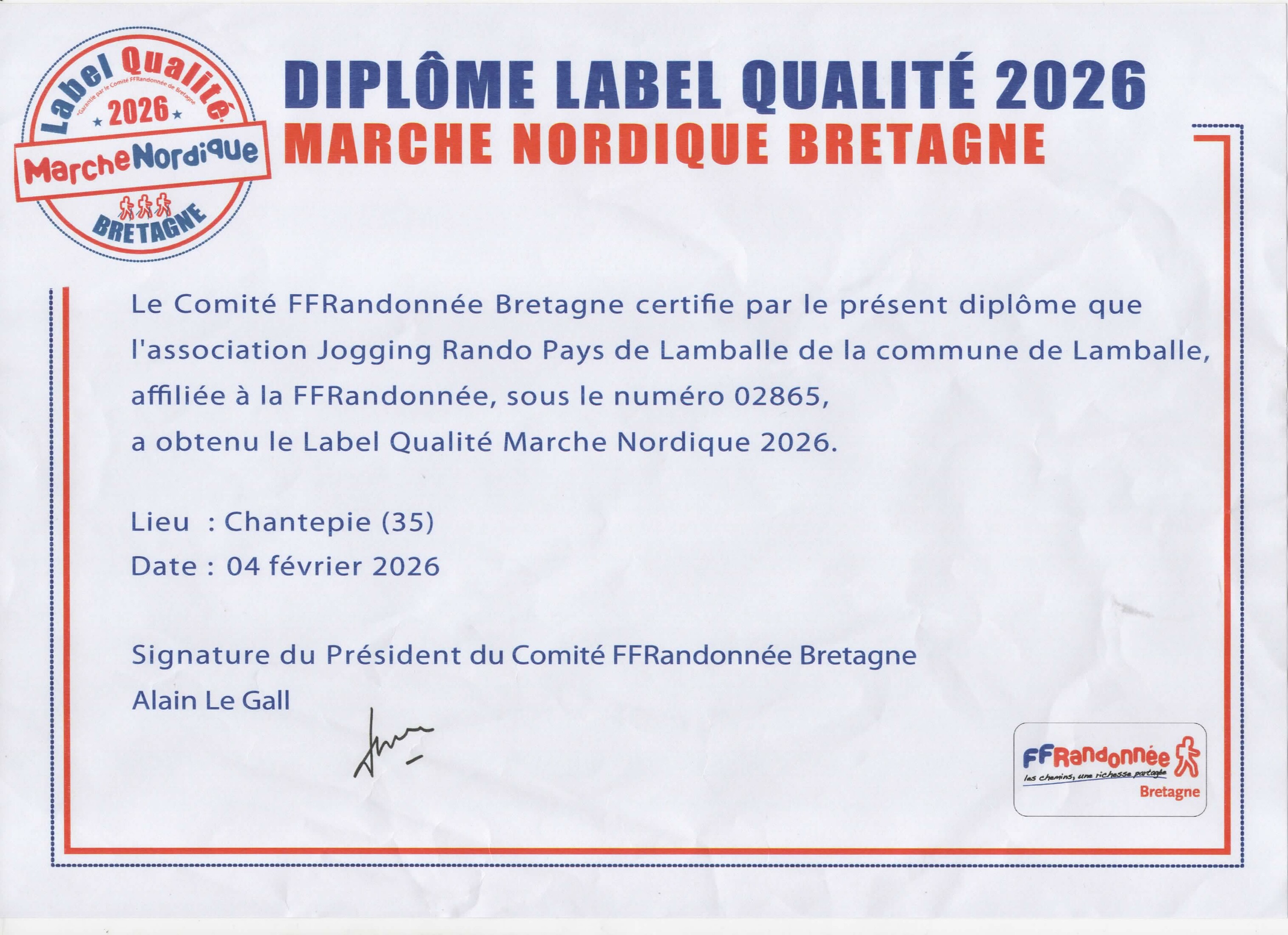 LABEL QUALITE MARCHE NORDIQUE 2026